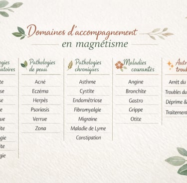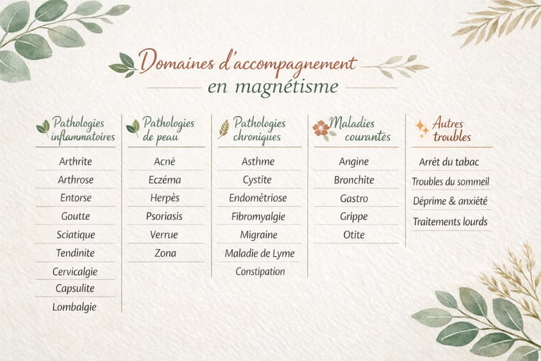 Le magnétisme vient alors en soutien, pour apporter confort, soulagement et accélérer le retour au bien-être.
